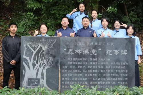 (圖為集體在“森林課堂”紀事碑前大合影 范孟媛供圖)