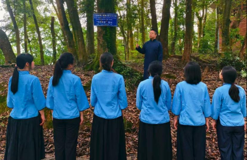 在仙亭山森林公園,實踐隊成員身著民國服裝,還原抗戰時期“森林課堂”的真實情景。董立功老師為大家講解船舶避碰規則及抗戰時期學子艱苦求知的事跡;志愿者們教授隊員們“你好大田”的旗語技能;隊員們圍坐一起大聲朗誦愛國詩篇。此次體驗融合民國服飾與航海知識,以場景化體驗讓實踐隊隊員們身臨其境感受集美學校內遷大田的艱苦歲月,更深刻體悟了嘉庚精神的豐富內涵。