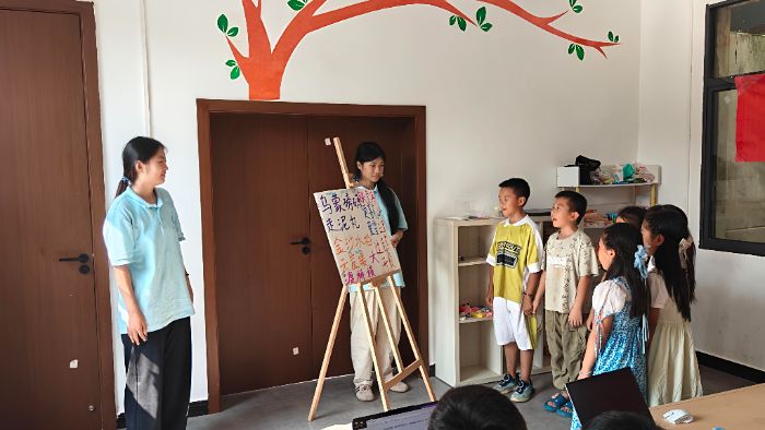 為響應"推普助力鄉村振興"號召,打通國家通用語言普及的"最后一公里",7月15日至16日,威海職業學院智慧學院"青為"志愿服務隊跨越2300公里,深入貴州省清鎮市王莊布依族苗族鄉小坡村兒童之家,開展為期兩天的"護苗"趣味課堂活動。隊員們精心設計系列課程,將普通話推廣巧妙融入游戲與實踐,在歡聲笑語中守護童真,為鄉村兒童的語言能力提升與文化視野拓展注入青春活力。