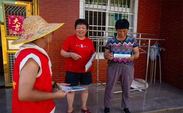 圖為實踐隊隊員為村民分發垃圾分類宣傳單 趙云翔 供圖