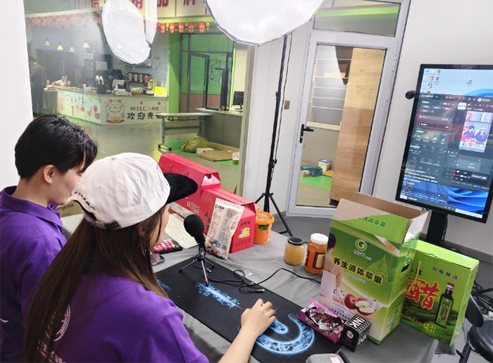 在這一個月的時間里,我們的主要任務是在坐落于韓店鎮鎮政府附近的電商中心進行當地農產品的電商直播推廣和線上店鋪運營,助力莊浪特色農產品“走出去”。我們累計開展農產品直播20余場,總時長超60小時,重點推廣水蜜桃、木耳、榆黃菇等特色產品。并負責接待了文學院、商學院、周恩來政府管理學院等多支“師生四同”實踐隊伍,以及兩支“青年馬克思主義者培養工程”隊伍,在接待與對接過程中,我們向他們介紹如何進行助農直播,將自己在電商中心工作的經驗盡數傳授,遇到不懂的地方也和他們一同摸索。與此同時,我們還與眾多實踐隊伍一起參與了六盤山紅色教育、“南風逐浪,共筑夢想”暑期興趣拓展等各項活動,通過我們共同的努力,將圍繞電商中心的各項工作紅紅火火地開展起來。