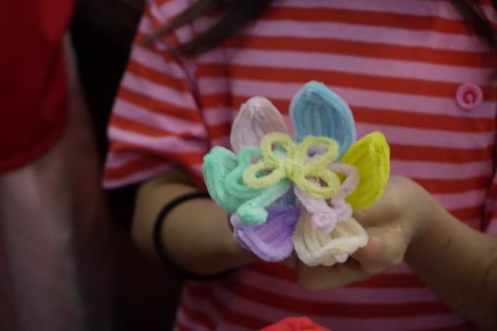 在扭扭棒活動(dòng)環(huán)節(jié),色彩繽紛的扭扭棒成了孩子們手中的“魔法道具”。他們的小手靈活舞動(dòng),時(shí)而彎曲,時(shí)而纏繞,專(zhuān)注神情仿佛在施展神奇魔法。每一個(gè)作品都獨(dú)一無(wú)二,充滿(mǎn)天馬行空的創(chuàng)意。孩子們?cè)趧?chuàng)作過(guò)程中,不僅鍛煉了動(dòng)手能力,更激發(fā)了無(wú)限想象力。志愿者們積極融入其中,與孩子們并肩作戰(zhàn)。當(dāng)遇到復(fù)雜操作,孩子們手足無(wú)措時(shí),志愿者們及時(shí)伸出援手,耐心輔助他們完成。一件件“大作”順利完成后,孩子和志愿者臉上都洋溢著滿(mǎn)滿(mǎn)的成就感,孩子們更是擁有了屬于自己的心儀作品,這份喜悅在空氣中久久彌漫。
